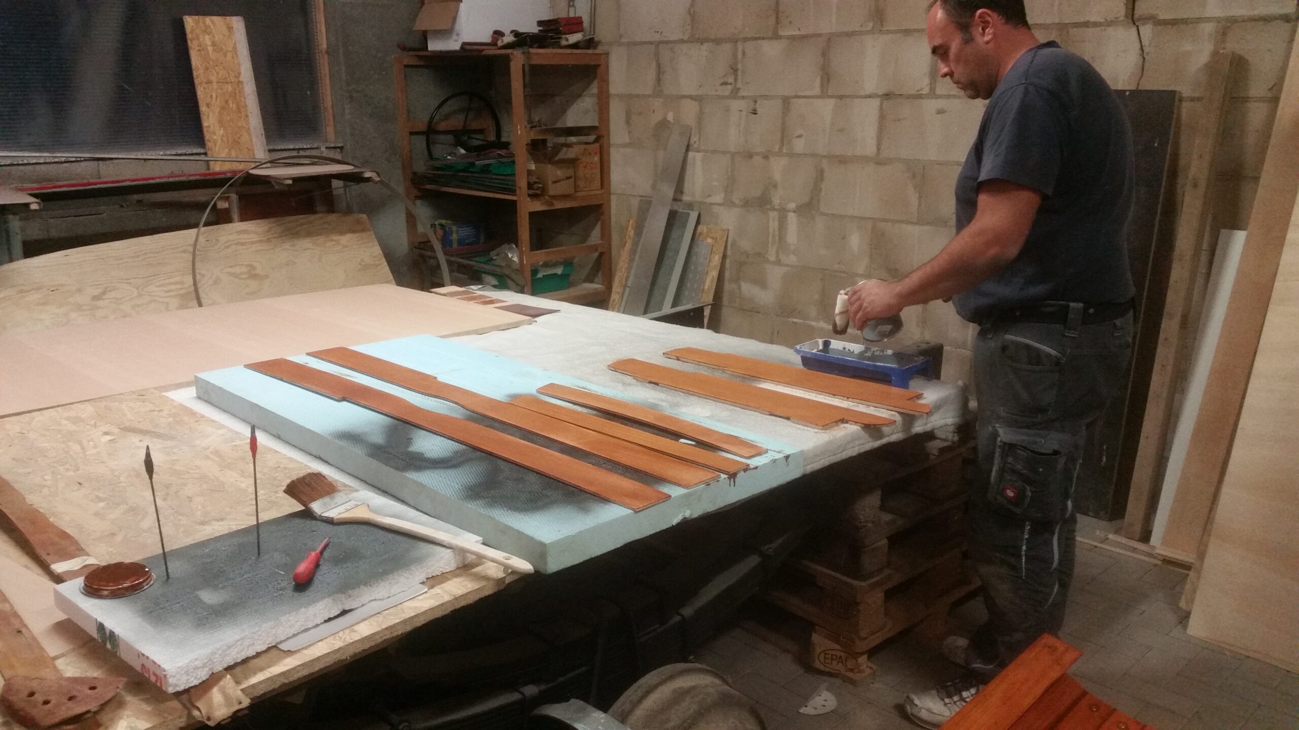 Beim heutigem Arbeitsdienst an unserem TLF 15 wurden die neu Angefertigten Holzverkleidungen und Panele mit Lasur farblich angeglichen und gegen Feuchtigkeit geschützt.