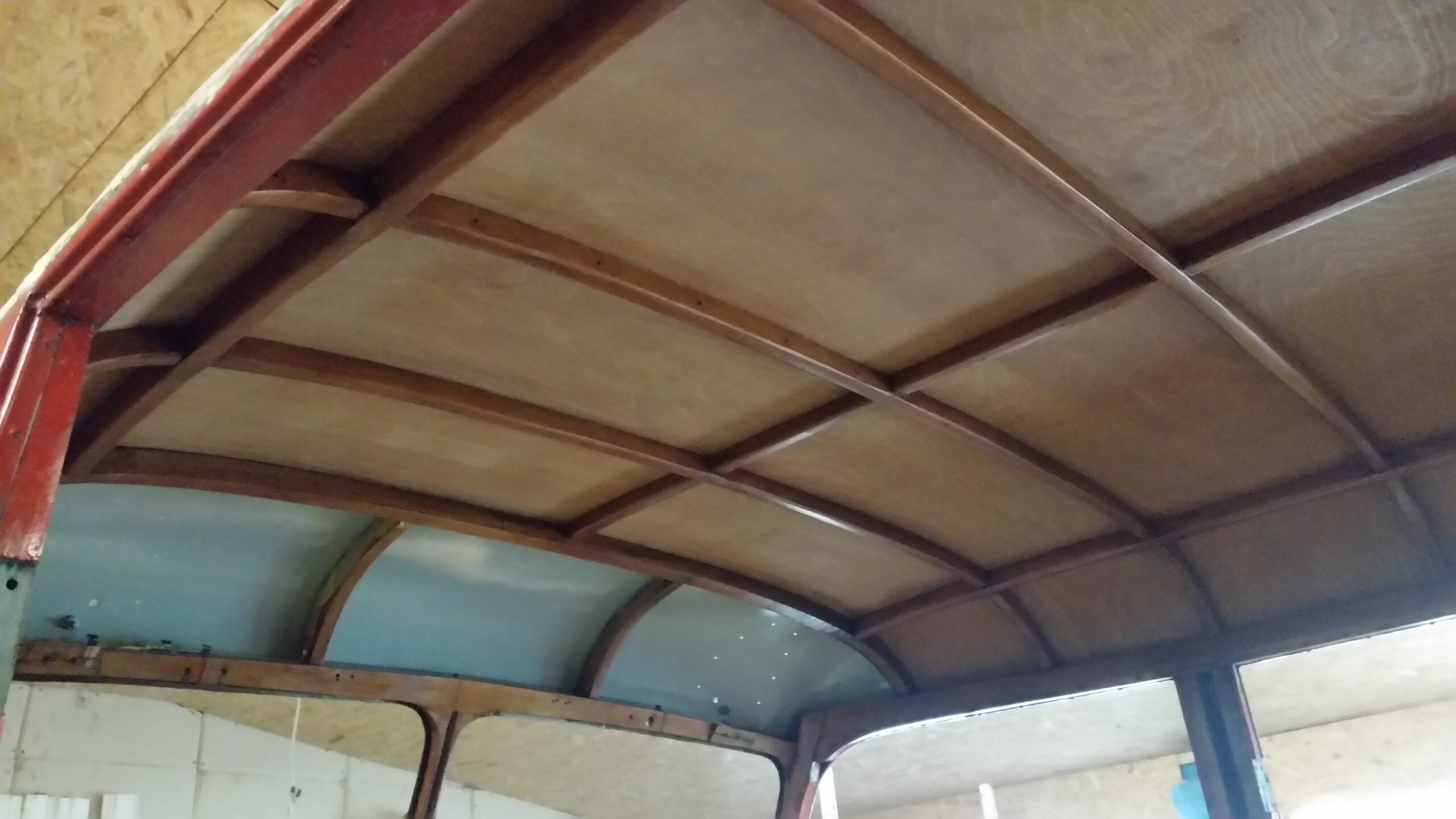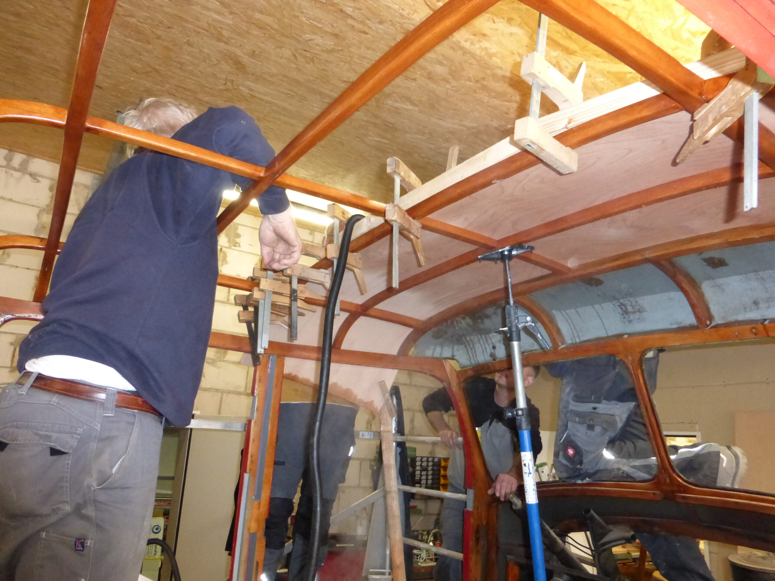 Mannschaftskabine: Dachverkleidung aus Holz eingebaut