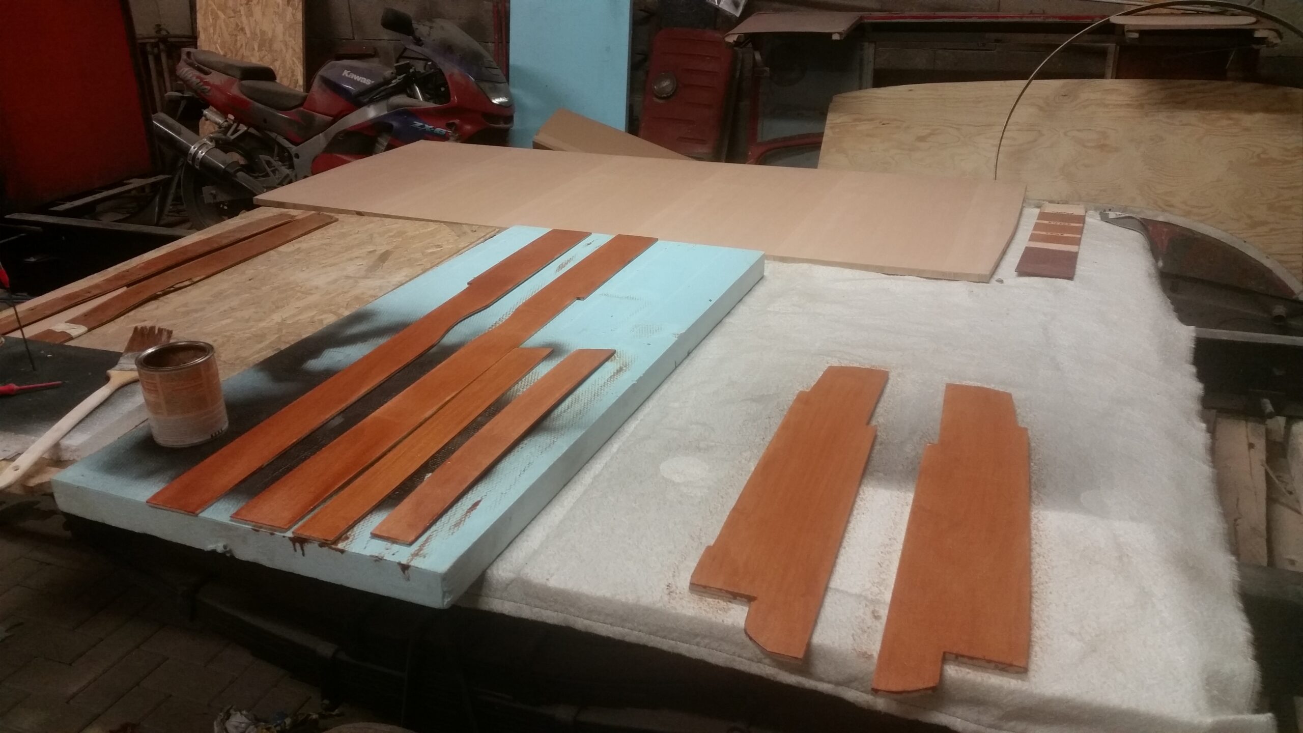 Beim heutigem Arbeitsdienst an unserem TLF 15 wurden die neu Angefertigten Holzverkleidungen und Panele mit Lasur farblich angeglichen und gegen Feuchtigkeit geschützt.